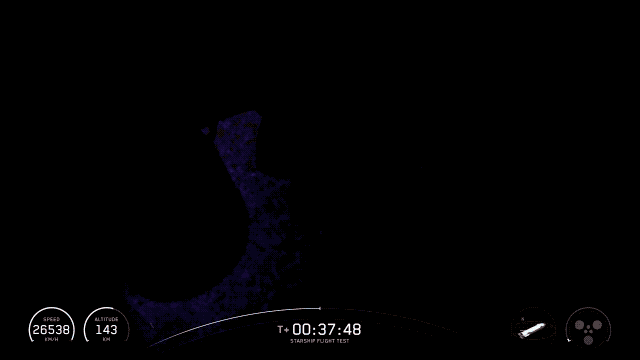 除了卫星部署,本次飞行还成功完成另一项重要测试——在太空环境下重新点燃一台猛禽发动机。整个过程将模拟星舰如何执行「离轨点火」操作,也就是在完成太空任务后,通过机动将飞船引导返回地面的过程。