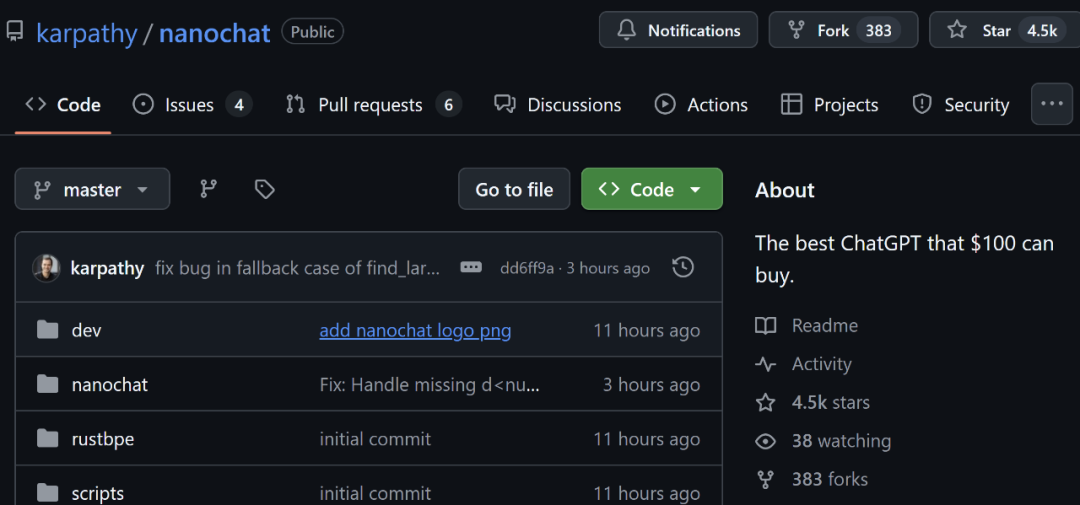 这个名为 nanoc h a t 的项目据说可以教你从零开始,以 100 美元的成本自建 ChatGPT。它覆盖 LLM 的训练和推理,只要跟着学就可以了解构建大模型的所有步骤了。