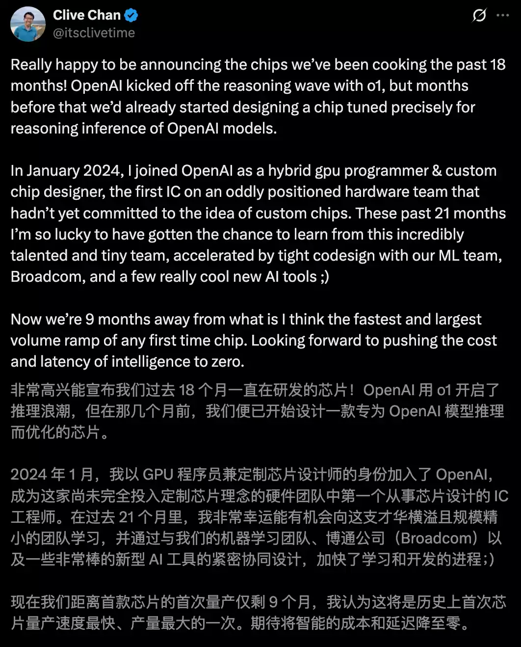 Greg Brockman表示,从设计一款全新芯片到大规模交付一个能端到端工作的系统,「工作量是天文数字」。