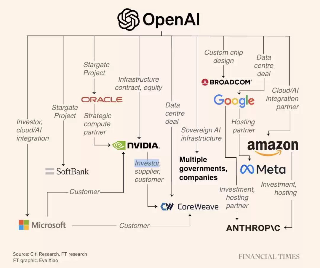 再加上,此前与云服务巨头甲骨文、CoreWeave签下的大单,万亿美元算力关系网已悄然形成。