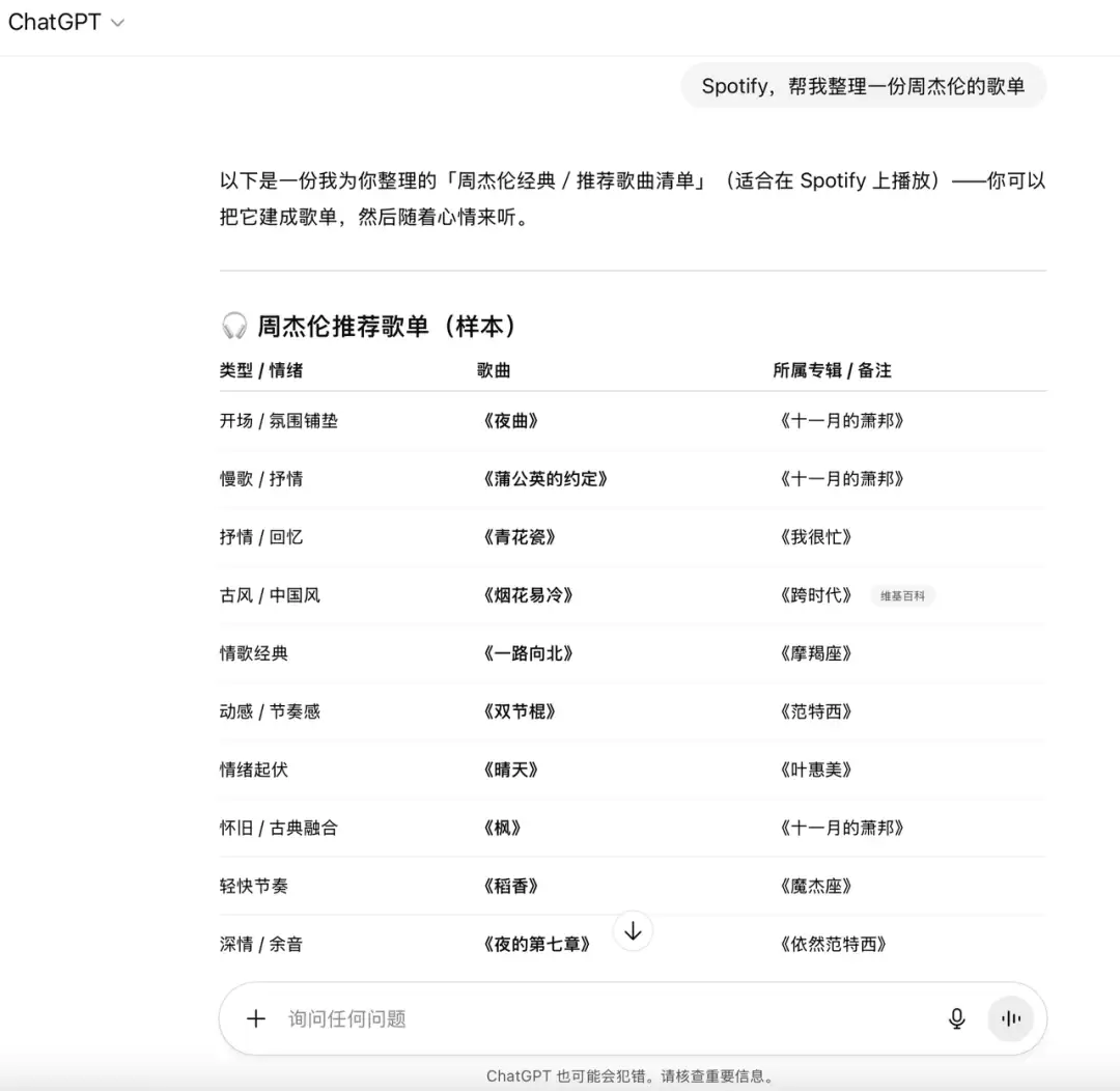 然后我又尝试了唤起Zillow和Spotify,前者的打开速度很慢,后者则没有成功唤起,依然是ChatGPT自己整理了一份文字歌单给我。