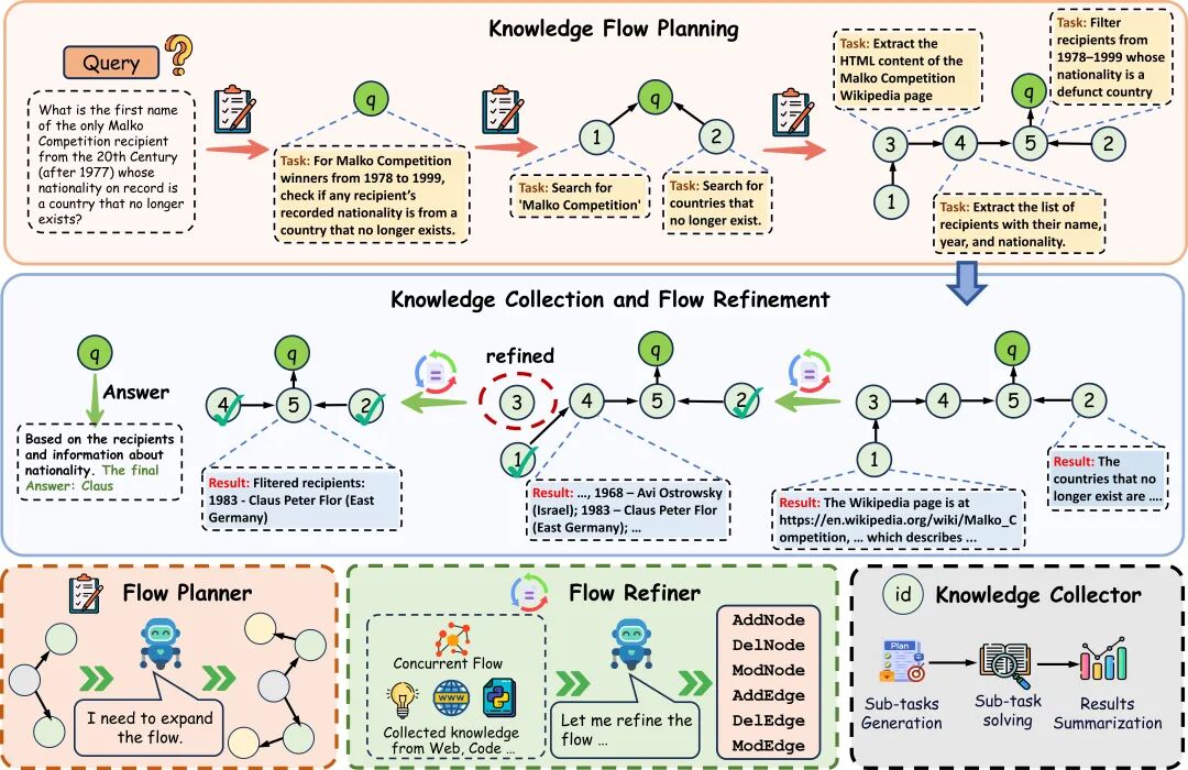 1、Knowledge Flow Planner:规划研究路线,像科学家一样拆解问题、逐层细化制定任务;