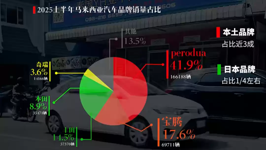 一是,马来西亚是一个产油国,加上政府还会提供补贴,所以当地的油比水还便宜。一升油折合人民币大概是3块钱,一瓶500ml的矿泉水却要6块钱。所以,当地燃油车消费是绝对主力——2025年上半年占比92%。