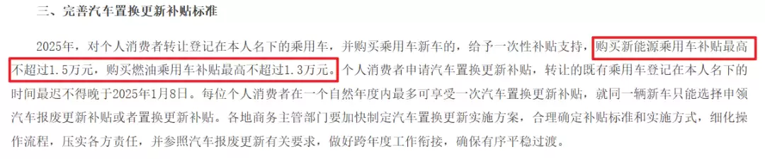 根据《商务部等8部门办公厅关于做好2025年汽车以旧换新工作的通知》的信息,走置换补贴,换新能源的最高补1.5万,换油车的最高补1.3万。
