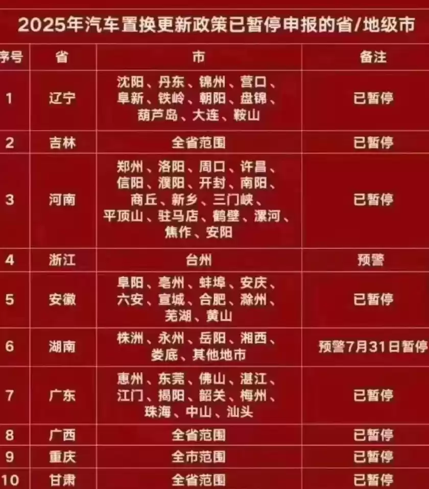 华夏日报,首轮补贴资金池快速消耗,多地紧急“刹车”暂停汽车置换补贴、