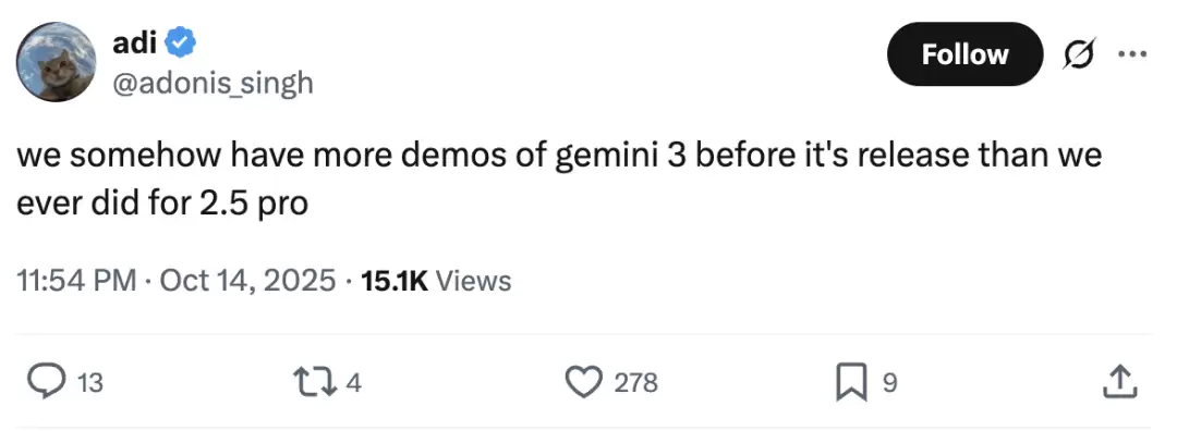 不知为何,我们在Gemini 3正式发布前看到的演示,比当初2.5 Pro版本还要丰富得多。