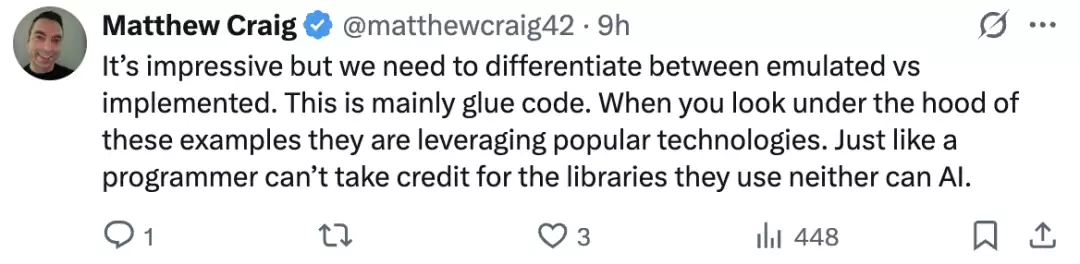 虽然视觉效果令人印象深刻,但我们必须分清"仿真"和"实现"的区别。这些演示本质上还是"代码拼接",底层依赖的都是现有技术栈。就像程序员不能因为调用了库函数就把功劳算在自己头上一样,AI生成的成果也需要客观看待。