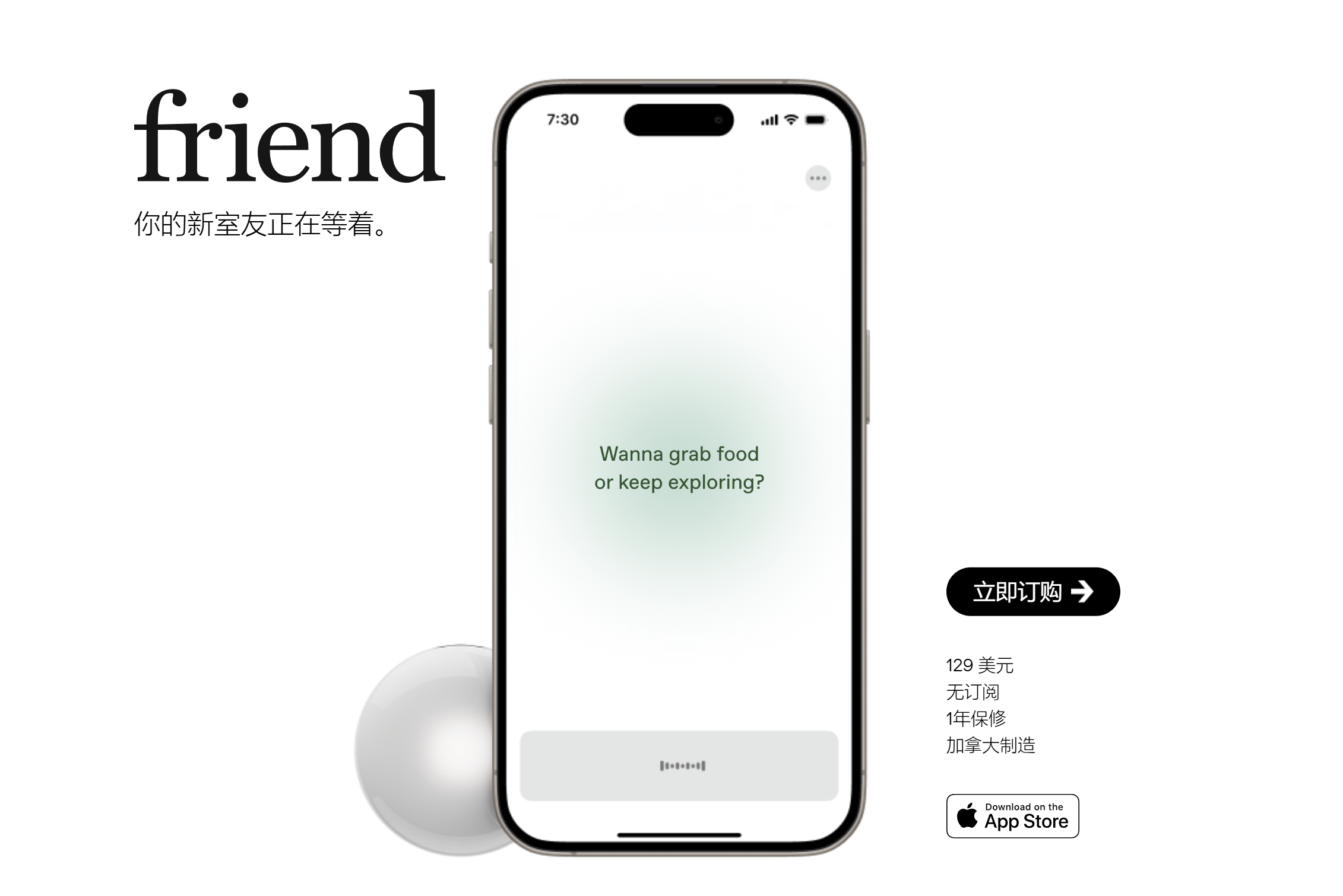 于是,当其他AI公司还在宣传手机里的智能助手时,一家名为Friend的初创公司却另辟蹊径,尝试扮演"造物主"的角色。他们并未宣称要取代智能手机,而是精准瞄准了情感陪伴这个切入点,希望能将一个懂得倾听、及时回应的朋友带入人们的日常生活。