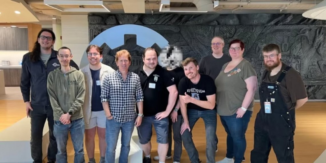 如今双方关系又添新佳话:据《Skyblivion》社交账号透露,贝塞斯达近日特邀开发团队参观工作室,双方不仅进行了深入的技术交流,还拍摄了系列合影留念。