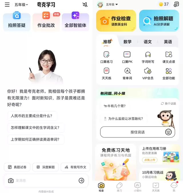 左为"夸克学习",右为"小猿AI"