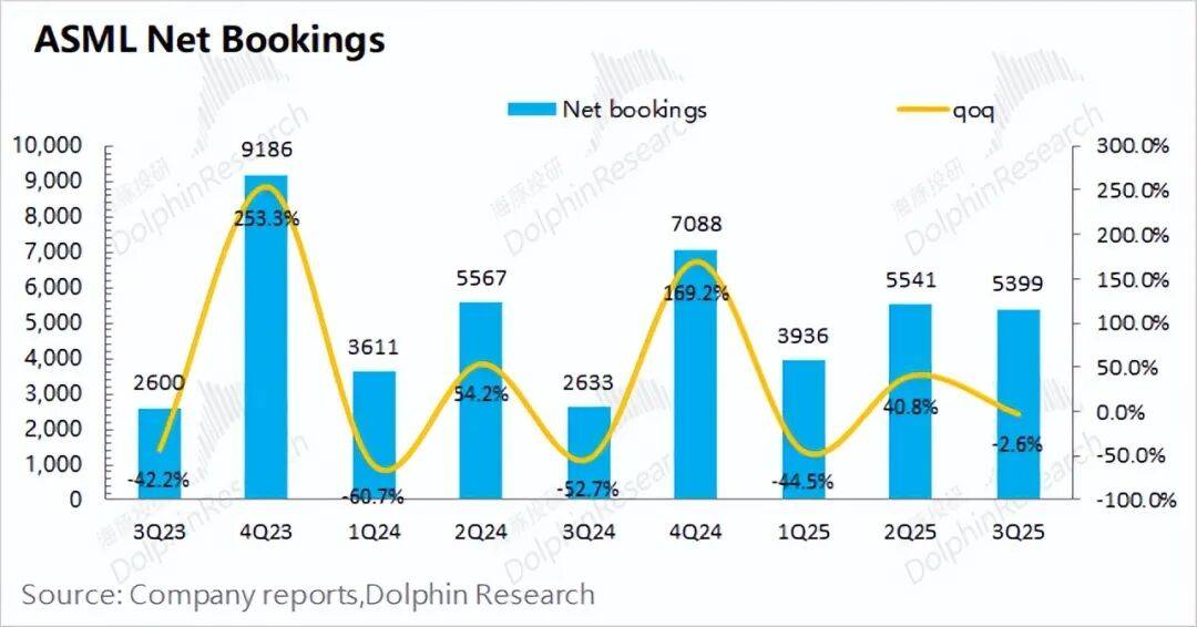 5、阿斯麦业绩指引:2025年第四季度预计营业收入为92-98亿欧元,毛利率区间为51%-53%。