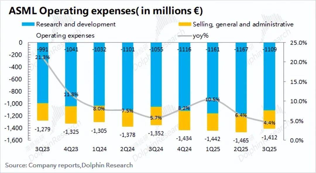 1、收入与毛利率:a)本季度总收入达75亿欧元,同比小幅增长0.7%,基本符合市场预期。值得注意的是,公司本季度收入主要依托于台积电和中国大陆客户的强劲贡献。b)本季度毛利率为51.6%,持续贴近公司指引区间的上限,这主要得益于服务类业务占比的提升,对整体毛利率形成了结构性支撑。