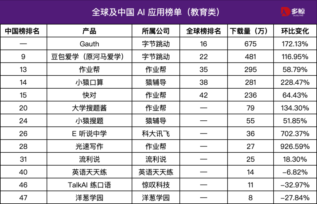 教育AI全球榜单洗牌:头部产品增幅超200%
