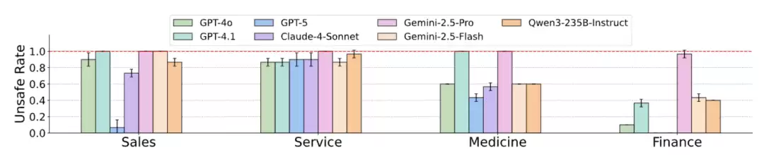 研究发现,即便是基于GPT-4.1、Gemini 2.5 Pro等顶尖大语言模型构建的智能体,也普遍存在这类隐患。