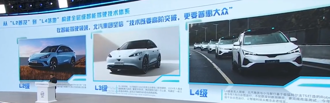 在L3层面,张建勇透露北汽在2024年已获得北京市首批L3路测牌照。截至今年8月,北汽L3级自动驾驶测试里程已突破11万公里。