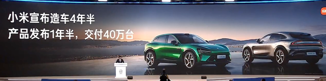 在众多嘉宾的专题演讲之后,雷军作为压轴嘉宾登场。他展示的第一张PPT,就是小米汽车累计交付量突破40万辆的里程碑。
