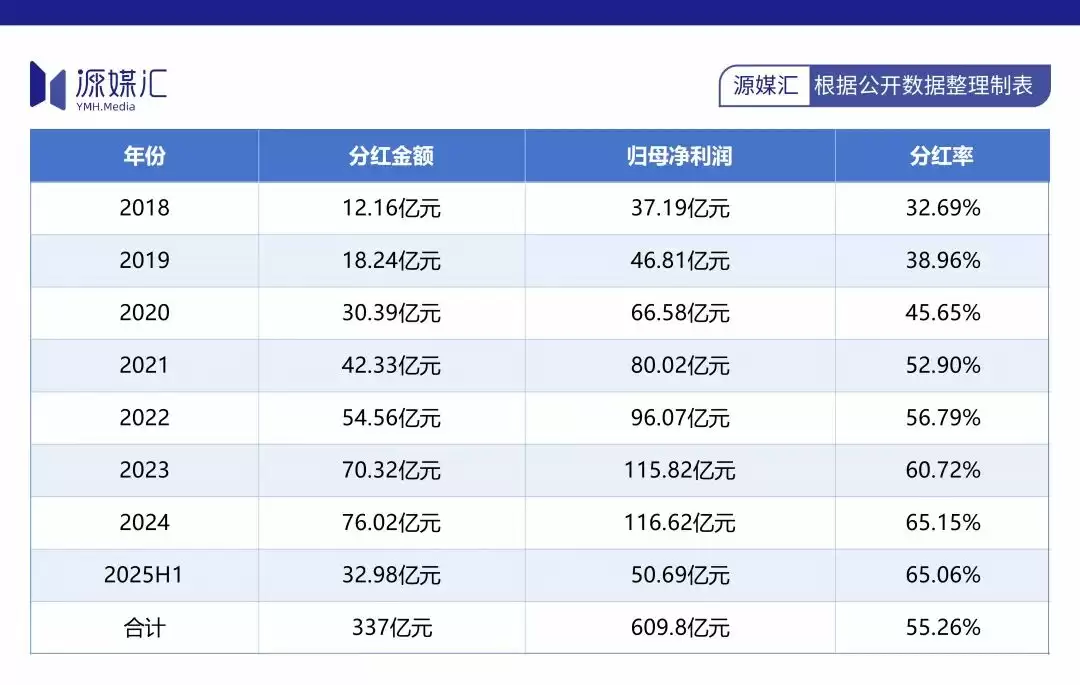 A股上市7年多以来,迈瑞医疗累计分红金额高达337亿元,是其上市融资金额59.3亿元的5.7倍。这种"赚钱能力强、分红比例高"的特质,与多数企业上市"补血"的目的形成了鲜明对比。