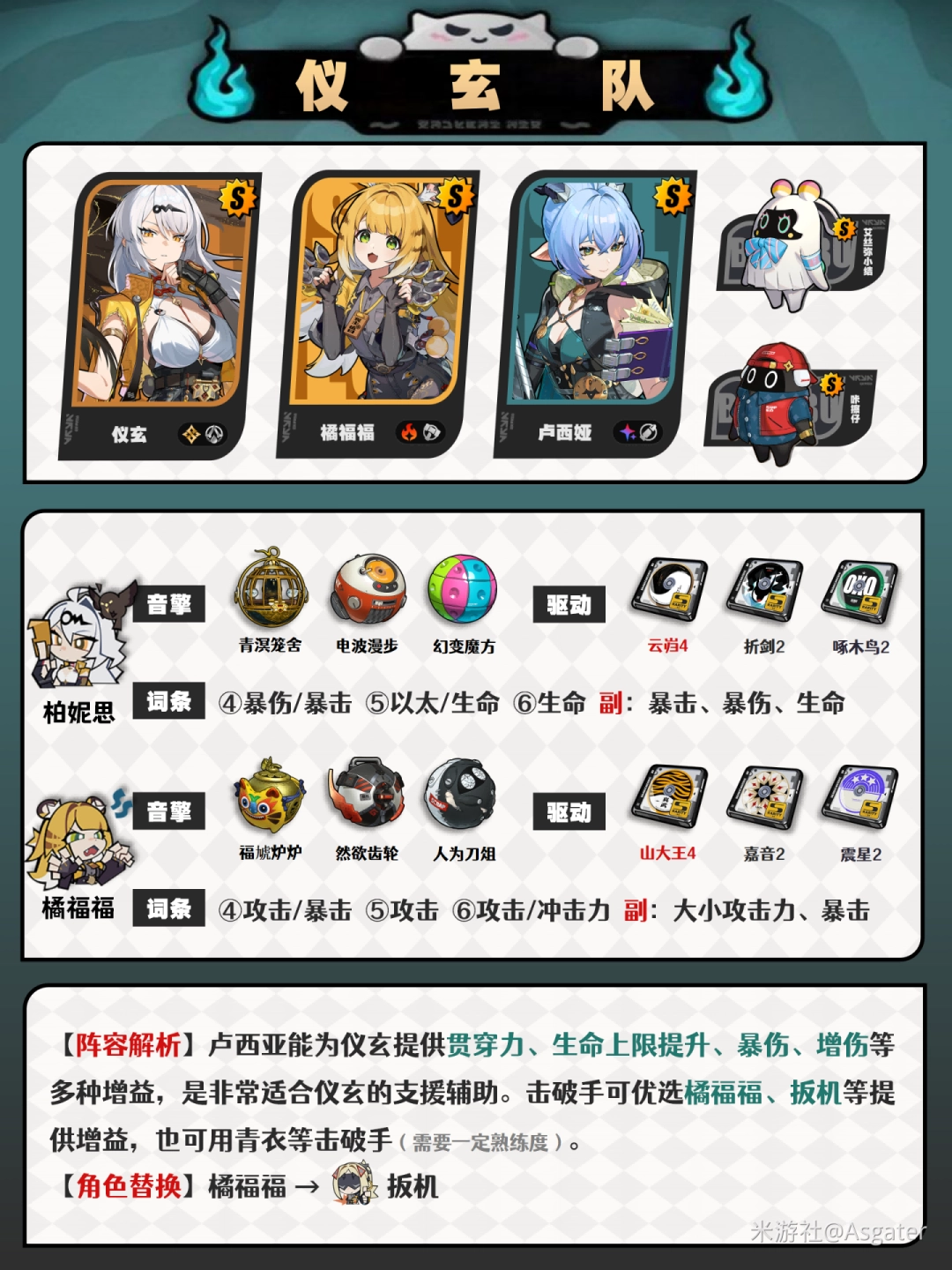 ① 仪玄置于卢茜妲之后,能让卢茜妲弹出【快速支援】时切至仪玄。