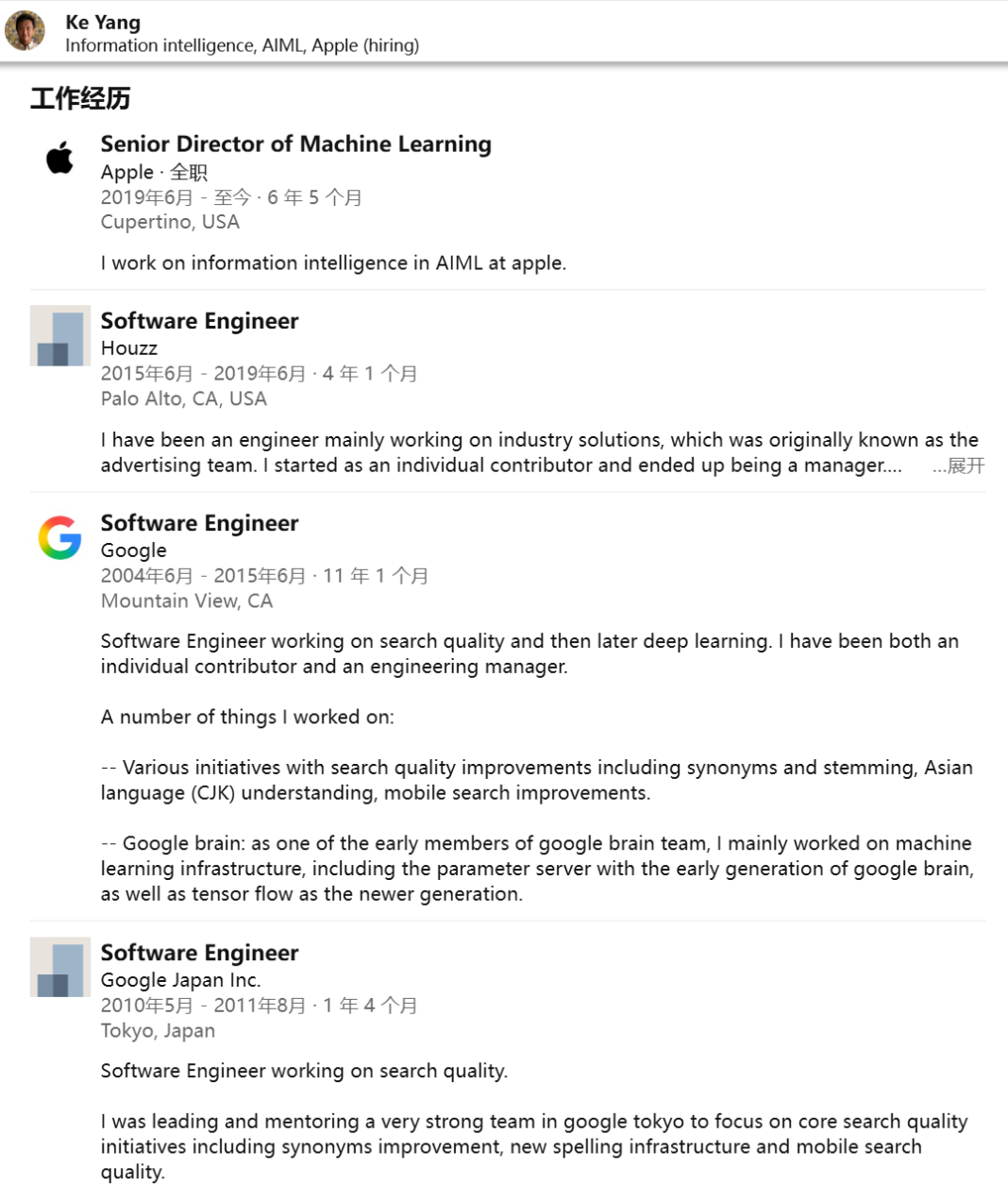 Ke Yang(杨克)在苹果负责AI搜索与问答系统研发,并于数周前被任命为内部代号为AKI(Answers, Knowledge and Information)团队负责人。