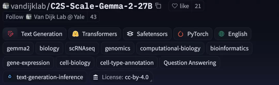 地址:https://huggingface.co/vandijklab/C2S-Scale-Gemma-2-27B