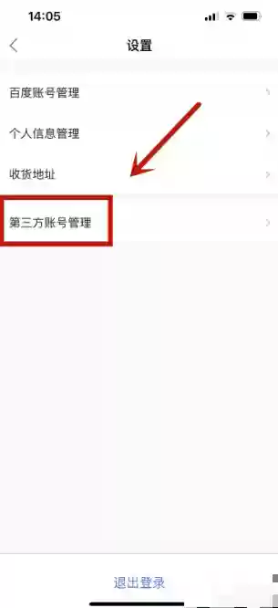 2、在设置菜单中,向下滑动找到"第三方账号管理"选项。