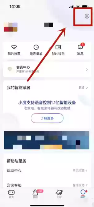 想要在小度App上绑定网易云音乐账号?首先打开应用,在我的界面右上角找到设置按钮。