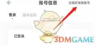 2、进入账号信息页面后,点击右上角的"注销并清除账号"选项。