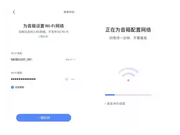 3、正确输入你家的WiFi账号和密码后,只需轻点"一键配网"按钮,设备就会自动完成网络连接设置。