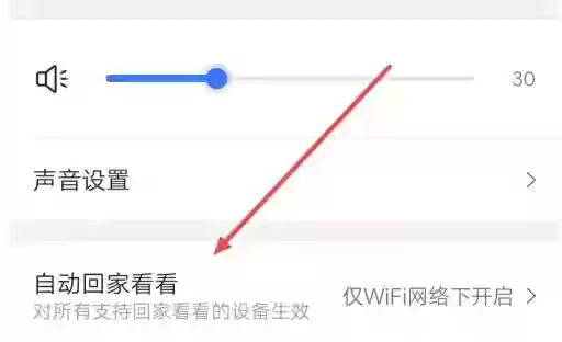 2、在设置页面中,找到并点击"自动回家看看"选项。