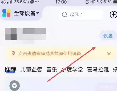 1、进入小度APP主页面后,点击右上角的设置按钮。