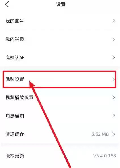 接着,进入设置页面后,轻点【隐私设置】选项即可完成跳转,详细位置可参照以下图示。