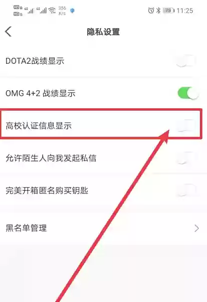 最后,在隐私设置界面中,找到并开启【高校认证信息显示】右侧的开关按钮。完成设置后的效果可查看配图示意。