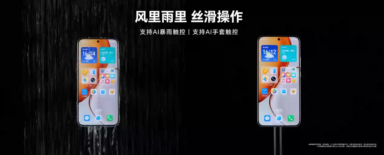 在被动防水的基础上,荣耀X70还带来主动防护升级,支持YOYO助手一键排尘排水、AI暴雨触控和AI手套模式,保障雨天、湿手或佩戴手套等场景下的精准操控,打造全天气全场景的极致耐用防水体验。