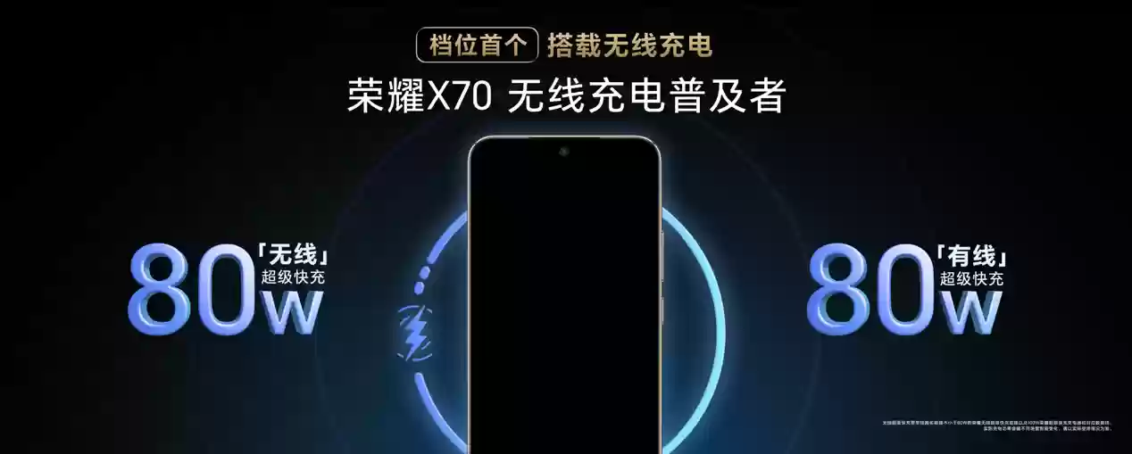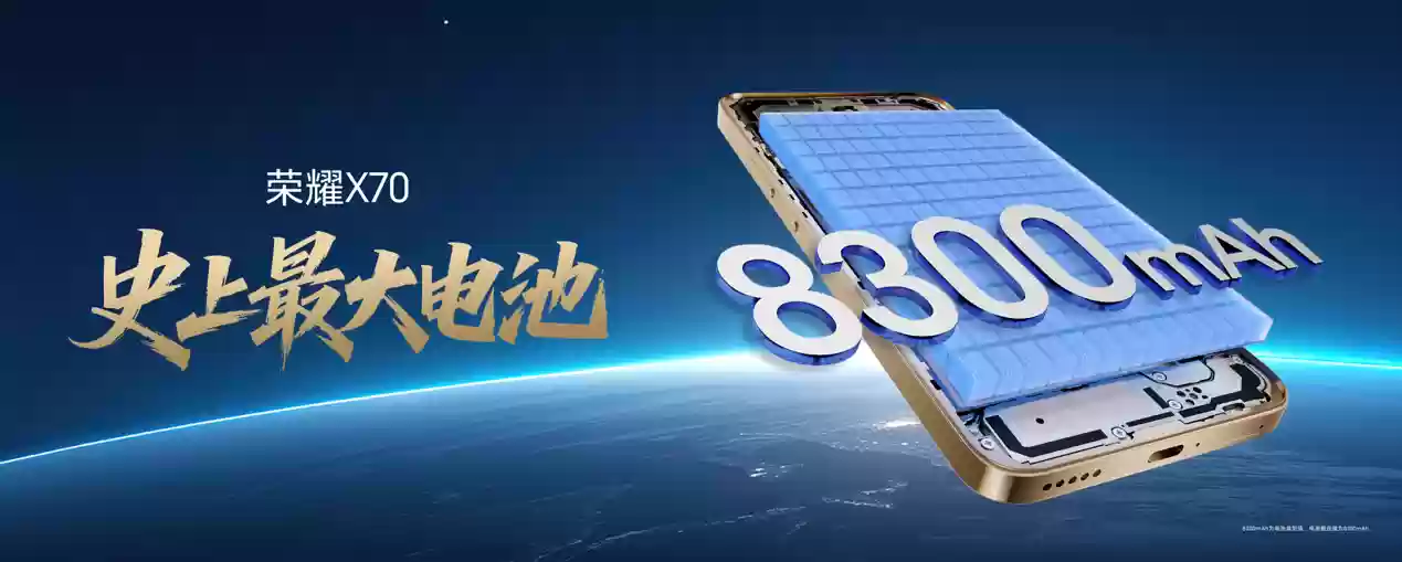 此次荣耀X70搭载第三代青海湖电池,容量高达8300mAh,再次刷新国产手机电池容量纪录。电池融合高密度材料与先进封装工艺,在实现超大电池容量的同时,机身厚度仍保持7.76mm,打破“大电池必厚重”的行业固有认知,兼顾强劲续航与便携体验。同步支持80W有线+80W无线双快充,并具备反向充电功能,构建出全面的续航解决方案。