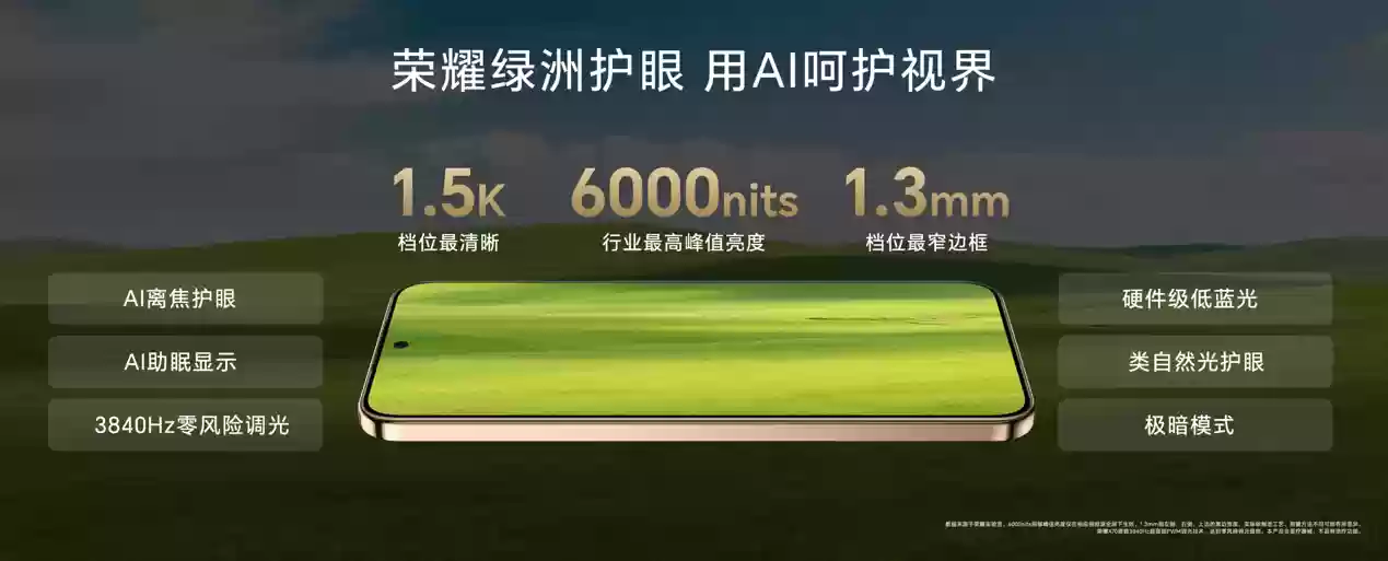 此外,荣耀X70带来更多旗舰级越级体验和人文关怀,其搭载的旗舰级6.79英寸荣耀绿洲护眼屏,峰值亮度高达6000nit,支持3840Hz高频PWM零风险调光、AI离焦护眼、AI助眠显示等六大护眼技术,画质表现更真实,视觉观感更舒适。屏幕更采用新型“氙”代高效有机发光材料,有效延缓屏幕老化,延长屏幕健康寿命。