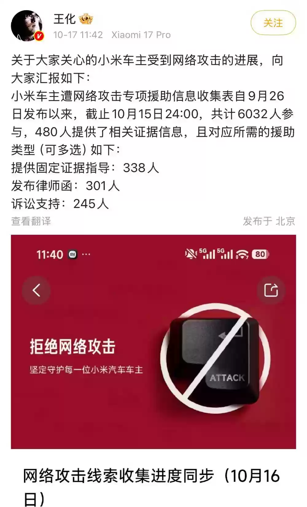 小米高管回应车主受网暴进展:480人提交证据