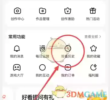 1、打开好看视频APP,进入个人主页后点击"观看历史"选项。