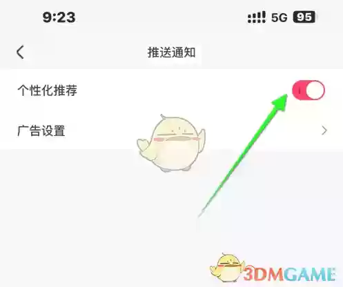 3、进入推送通知页面后,找到“个性化推荐”选项,关闭其开关即可完成设置,操作步骤如图所示。