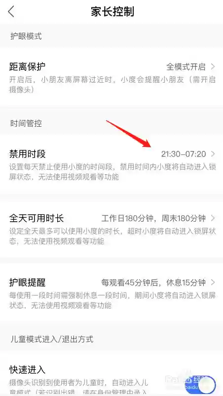 第二步:成功登录小度账户后,在主界面找到并点击"家长控制"功能模块