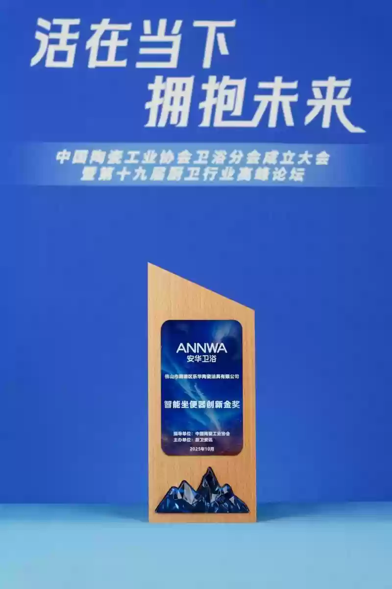 此次大会,安华卫浴被授予"中国陶瓷工业协会卫浴分会常务副会长单位"。同时,在论坛"KBB厨卫榜"颁奖环节,安华卫浴凭借在智能坐便器领域的技术突破与产品创新,从众多品牌中脱颖而出,成功斩获 "2025 智能坐便器创新金奖"!该奖项由行业协会联合技术专家、市场调研机构共同评选,从产品的核心技术、用户体验、创新设计、环保性能等多维度综合考量,不仅是对安华智能坐便器硬核实力的高度认可,更印证了品牌在智能卫浴赛道的深耕成果,成为本届论坛的亮眼时刻。