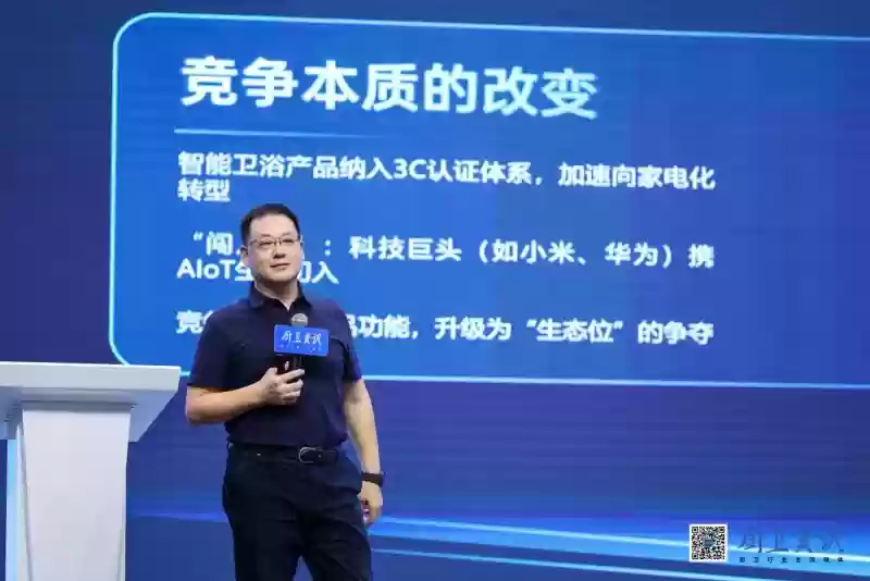 集团副总经理卢金辉先生在本次论坛发表《从家电到卫浴,产业演进逻辑与未来范式重构》主题演讲,深入剖析了智能卫浴与家电融合发展的趋势,指出技术跨界与场景互联正重塑用户对卫浴空间的认知。安华卫浴始终坚持"以用户需求为中心"的创新理念,通过智能化与人性化设计的深度融合,持续提升产品体验,向全场景智能生态迈进,为行业转型提供可借鉴路径。