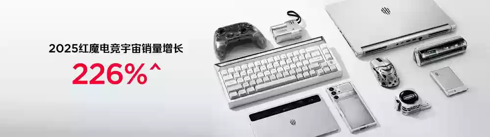 红魔始终秉持"为玩家打造极致游戏体验"的初心,在电竞领域持续深耕,铸就了其行业品牌不可撼动的领军地位:2025年红魔电竞宇宙销量增长226%;稳居电竞手机品类市占率首位。