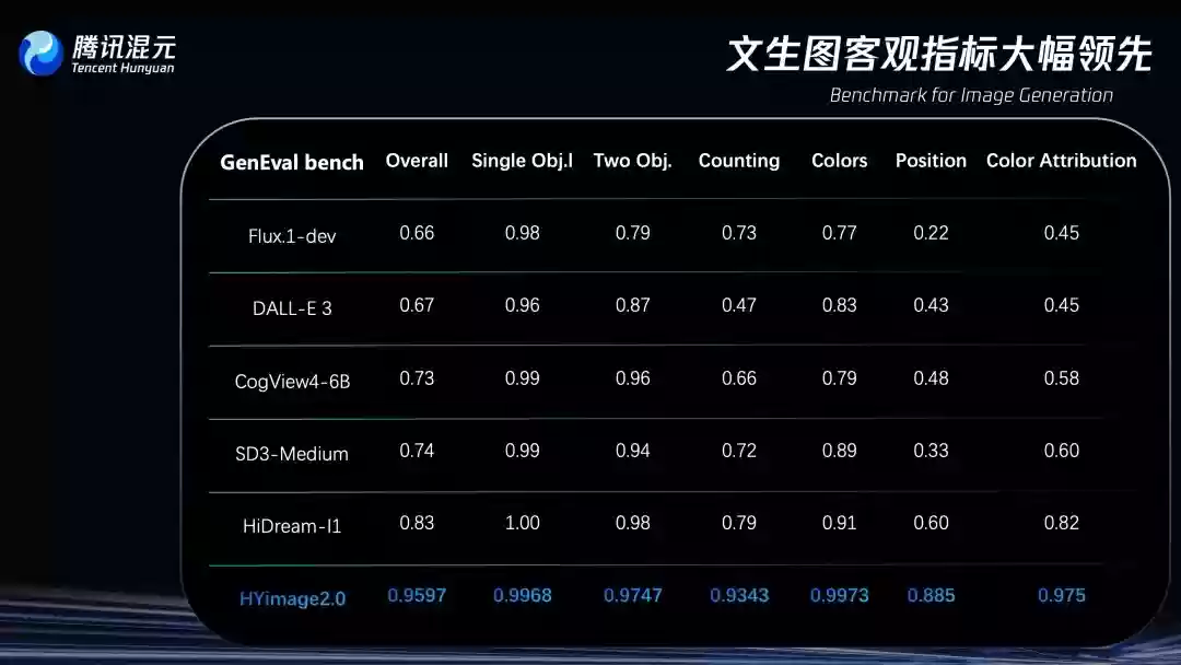 在专业评估基准GenEval上,混元图像2.0对复杂文本指令的理解与生成准确率突破95%,远超同类模型表现。