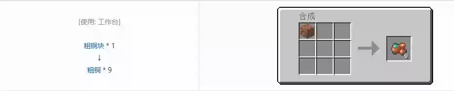 粗铜在实际使用中主要有两大功能:首先,它可以作为熔炉的原料,直接烧制成实用的铜锭;其次,它还能通过工作台合成为粗铜块,用于建筑或存储。