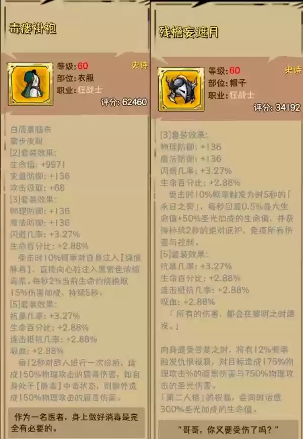 因为60级武器毒疫套增加毒伤效果,黎明套则是光暗属性加成,而且我发现80级装备仍然保留着毒伤增幅