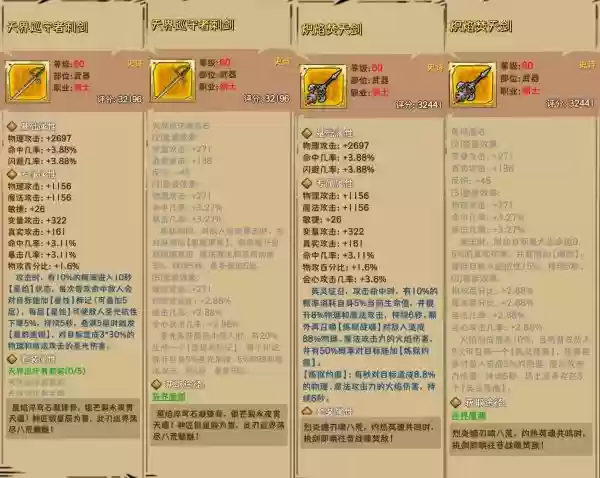 剑士60级武器天界套提供圣光属性伤害加成,而火剑士自然是火属性伤害加成