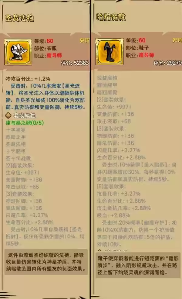 3.法师60级套装效果稍显局限,毕竟法师只有火毒冰三个流派,而60级套装只有光暗套(70级是火冰套)