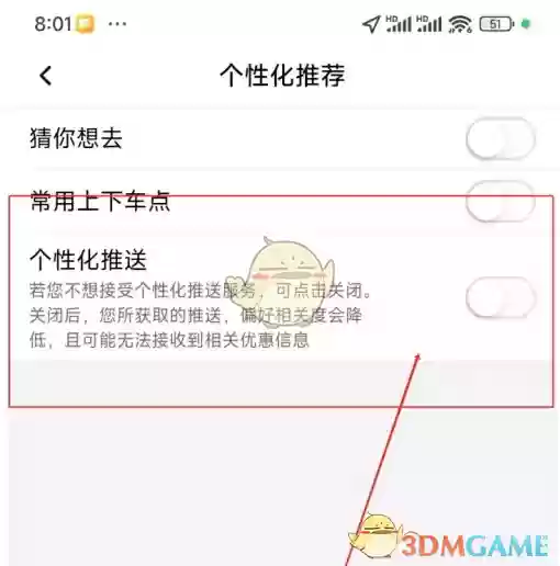 3、在跳转的新界面中点击"个性化推送"右侧的按钮,当按钮颜色变成灰色,即表示已成功关闭该功能