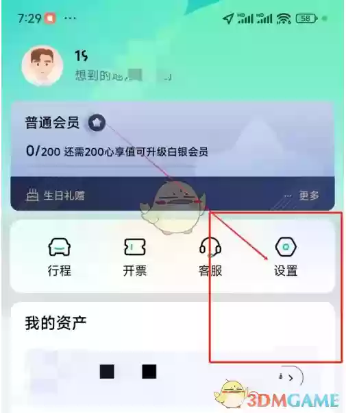 1、打开享道出行APP,在主界面点击右下角的"个人中心",进入"我的"页面后点击"设置"