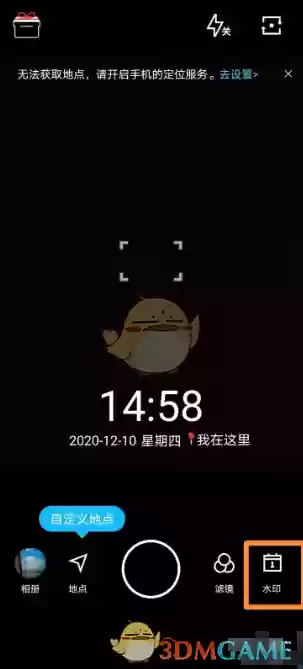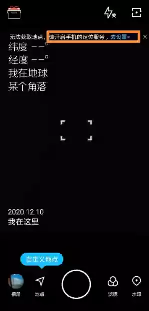 5、完成设置后返回拍摄界面,即可看到实时显示的经纬度水印信息。